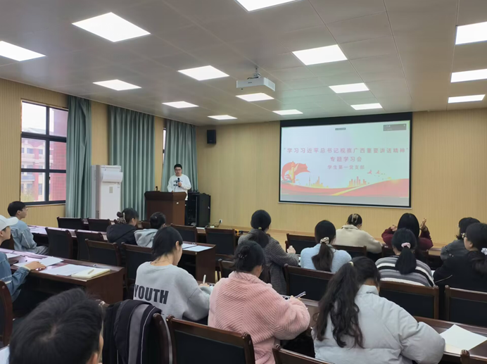 会议强调,支部党员要深刻领悟习近平总书记视察广西的重大意义,自觉把思想和行动统一到习近平总书记视察广西时的重要讲话精神上来,坚定不移沿着习近平总书记指引的方向前进,为学院、学校、社会贡献自己的力量。