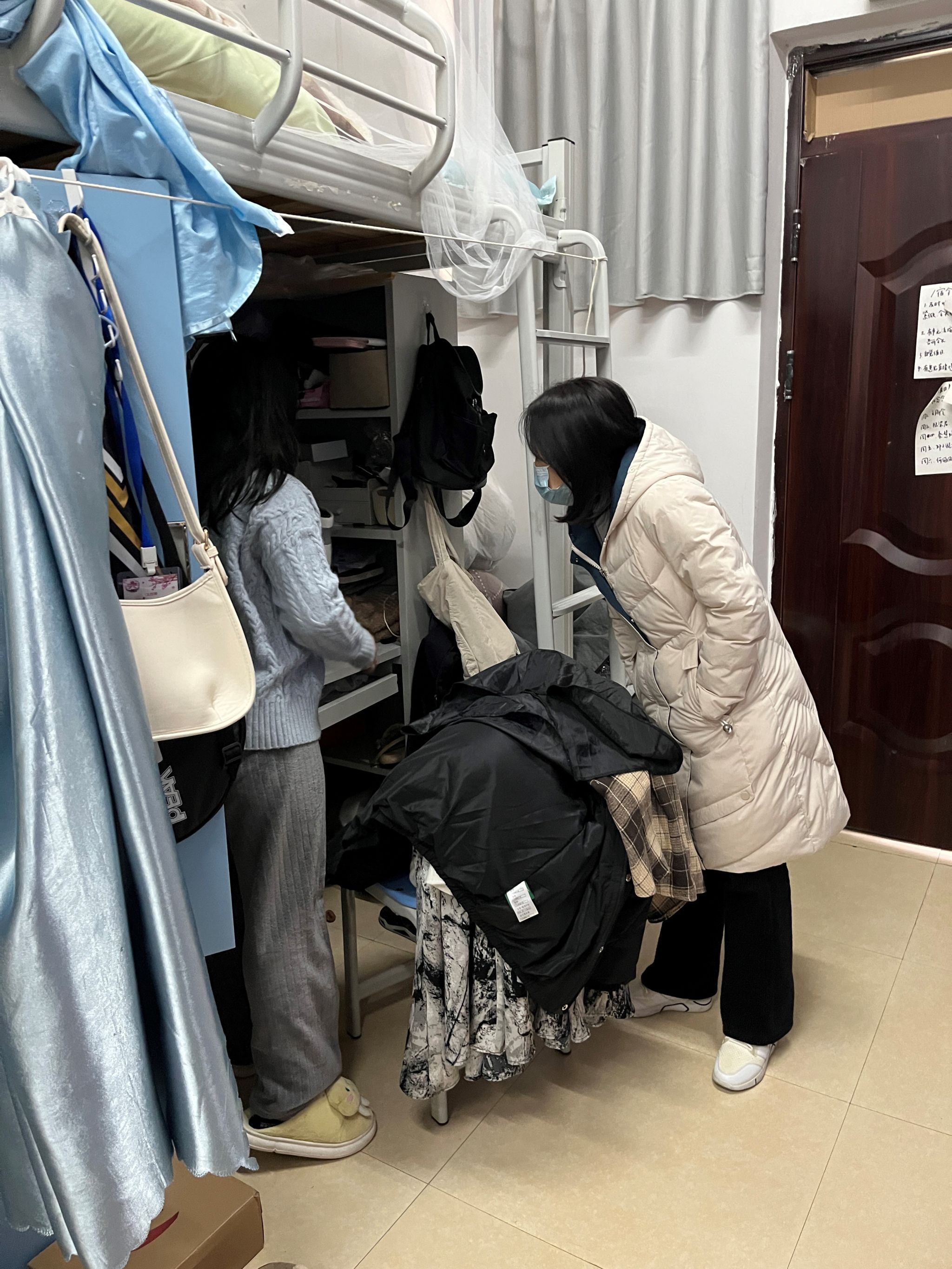 韦副书记和辅导员们在走访过程中认真查看学生的住宿环境及宿舍各种设备电器,嘱咐学生离校前关好宿舍水电门窗,收好贵重物品,做好寝室卫生管理。提醒同学们严格遵守宿舍相关规定,不在寝室使用或者存放违规电器,加强防范意识,确保安全离校、开心回家。韦副书记给同学们强调返家途中注意人身、财产和交通安全,不坐无牌、无证、超载等非法运营车辆,不轻信“热心陌生人”的帮助,注意防范电信诈骗等。建议同学们在寒假期间做好学习、锻炼、社会实践等规划,过一个充实有意义的寒假和春节。