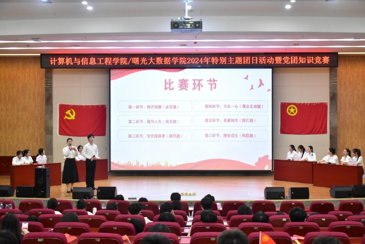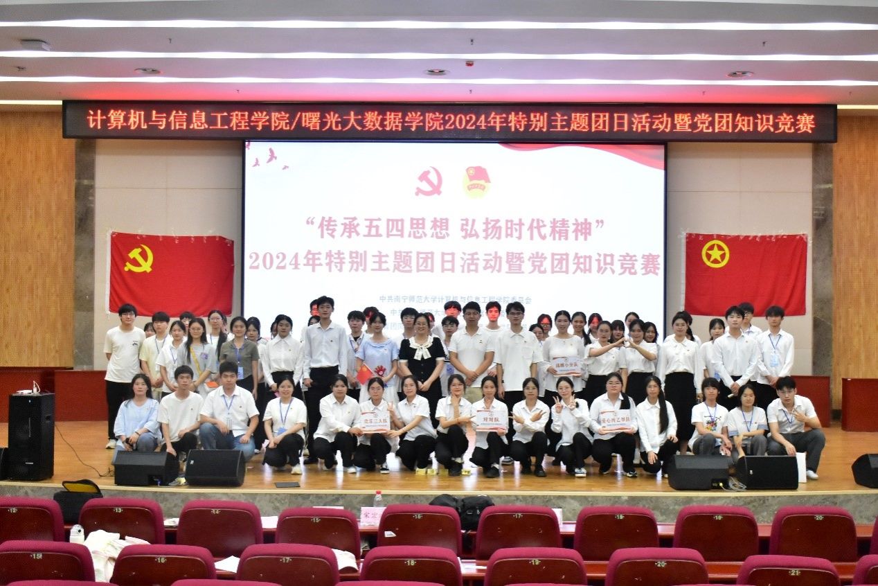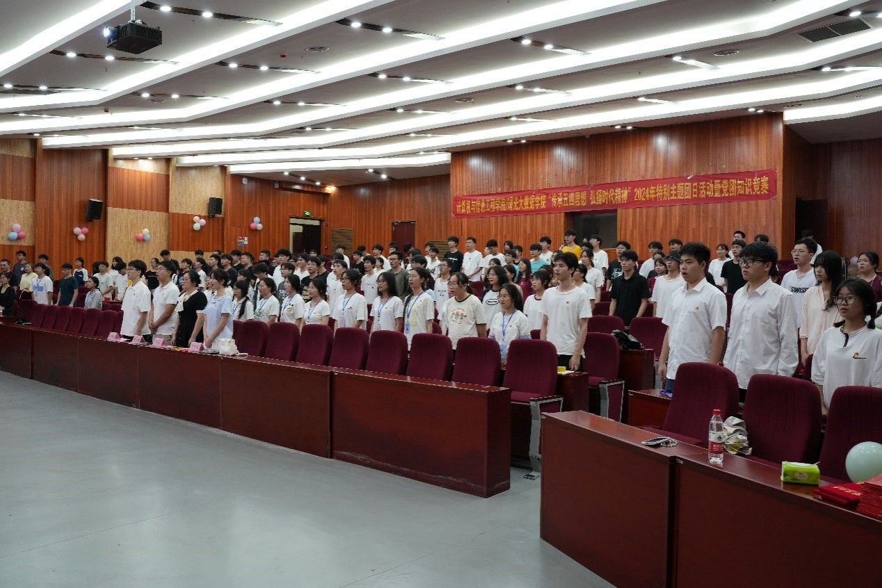 为纪念五四运动105周年,引领广大团员青年认真学习贯彻习近平新时代中国特色社会主义思想,5月23日,计算机与信息工程学院/曙光大数据学院团委在武鸣校区图书馆报告厅举办了“传承五四思想,弘扬时代精神”2024年主题团日活动暨党团知识竞赛决赛。参加活动的有学院两位辅导员宋宏斌和林雪、团委学生会主席团、学院各团支部代表以及武鸣校区各学院代表。