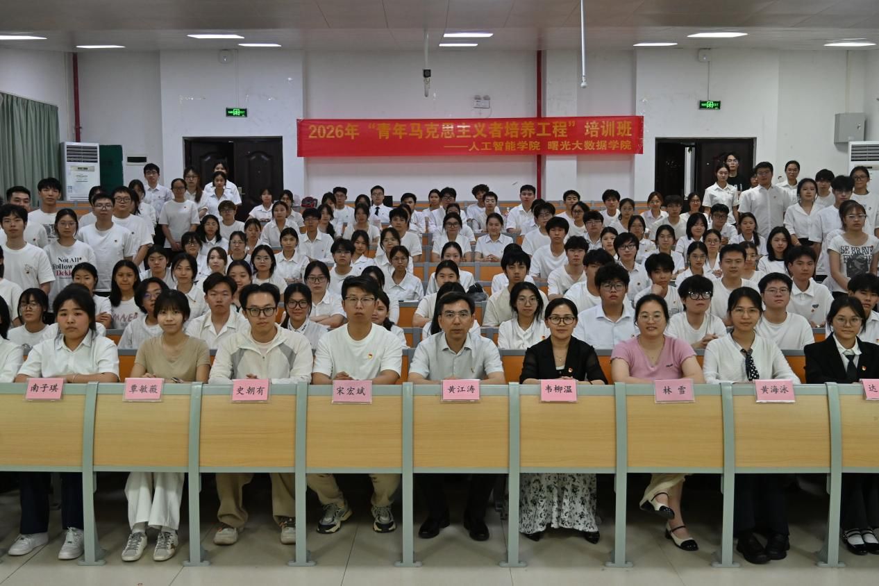 /曙光大数据学院于4月15日举行“青年马克思主义者培养工程”培训班(以下简称“青马班”)开班仪式暨第一讲。学院党委副书记(主持党委工作)黄江涛担任主讲,学院党委副书记韦柳温、团委书记宋宏斌、学院辅导员林雪、史朝有、黄海泳、覃敏薇以及青马班全体学员参加。
